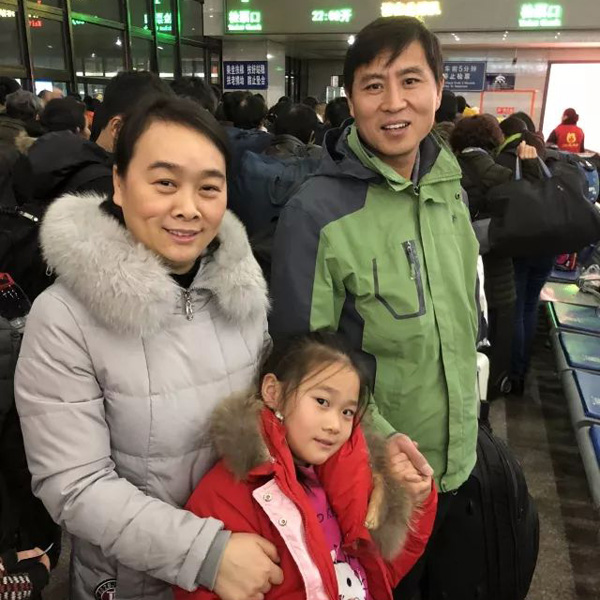 1月25日晚上,記者在北京西站候車室里與老郭一家三口匯合,也第一次見到了他的妻子和女兒。在北京的這些年,郭海旺并不孤單。媳婦兒余菊花2000年來北京和他一起打工,當(dāng)年生下了女兒琦琦。最初和很多人一樣,孩子生下來就被送回河南老家。但老郭兩口子思來想去,還是在琦琦3歲時把她接到了自己身邊,接到北京上學(xué)。當(dāng)然,這并不容易。