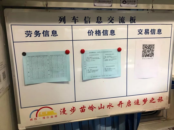 為更好地幫助少數(shù)民族村民“走出去”,胡貴川和同事們?cè)诨疖嚿洗罱ㄆ鹆诵畔,為村民提供?wù)工信息,并協(xié)助農(nóng)戶將農(nóng)產(chǎn)品帶上車銷售。
