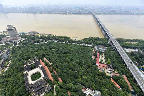 這是7月7日航拍的武漢長江大橋和長江江面。