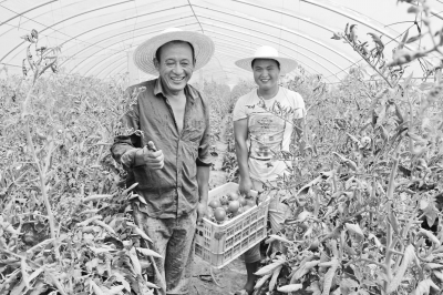 江蘇泗洪縣四河鄉(xiāng)淮豐村菜農(nóng)在采收西紅柿。朱薇薇攝