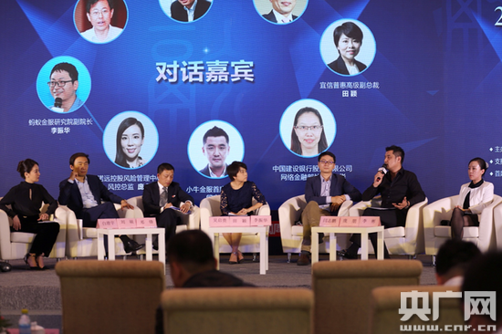 在隨后的圓桌對(duì)話環(huán)節(jié),中國小額信貸聯(lián)盟秘書長白澄宇、北極光創(chuàng)投創(chuàng)始人兼董事總經(jīng)理鄧鋒、巨氧超寶商業(yè)模式總設(shè)計(jì)師吳啟貴、宜信普惠高級(jí)副總裁田穎、中國建設(shè)銀行股份有限公司網(wǎng)絡(luò)金融部處長李彬、小牛金服首席風(fēng)控官閆志鵬、諾遠(yuǎn)控股風(fēng)險(xiǎn)管理中心風(fēng)控總監(jiān)龐朋和螞蟻金服研究院副院長李振華等嘉賓圍繞“金融跨界與融合”、“金融創(chuàng)新與未來”等議題進(jìn)行互動(dòng)和探討。