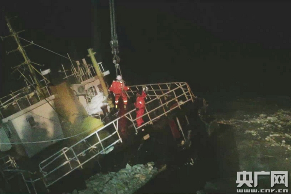 廣東汕頭漁船觸礁下沉 邊防官兵生死大營(yíng)救