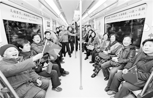 12月15日,安徽合肥軌道交通1號(hào)線列車車廂內(nèi),來(lái)自瑤海區(qū)勝利路街道一號(hào)線沿線搬遷居民在體驗(yàn)軌道交通。當(dāng)日,安徽首條地鐵線路——合肥軌道交通1號(hào)線啟動(dòng)20萬(wàn)人大型免費(fèi)試乘體驗(yàn)活動(dòng)。這是一條縱貫合肥市南北的線路,將于12月26日正式開通運(yùn)營(yíng)。 張大崗攝