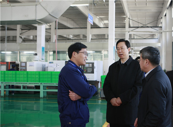 圖為泰州市委書記藍(lán)紹敏在罡楊鎮(zhèn)罡楊股份公司了解生產(chǎn)情況。顧祥忠攝