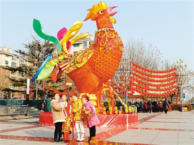 新春之際,河北大廠回族自治縣在公園、街頭精心布置各種花燈,城鄉(xiāng)群眾紛紛走出家門觀花燈、賞美景。圖為幾名小朋友在市民廣場的花燈前游玩拍照。