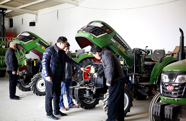 2月23日,農(nóng)民在河北省武邑縣武邑鎮(zhèn)一農(nóng)機(jī)銷售站選購農(nóng)機(jī)。