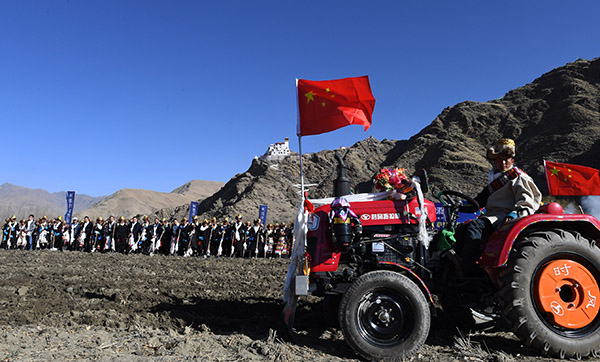 當(dāng)日是藏歷的正月十九,西藏各地迎來“開耕節(jié)”。西藏山南市乃東區(qū)昌珠鎮(zhèn)門中崗村的上百位村民身著盛裝,載歌載舞,在西藏第一塊農(nóng)田,上演一場傳承千年的春耕儀式。