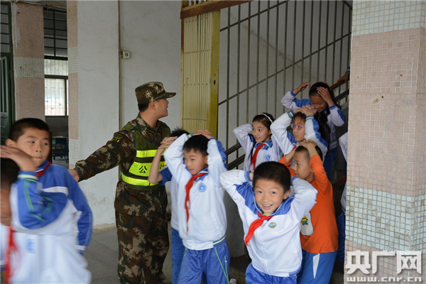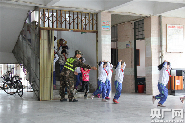 廣東汕頭云澳邊防派出所官兵在組織云澳中心小學(xué)的學(xué)生進(jìn)行緊急疏散演練。劉建高 攝