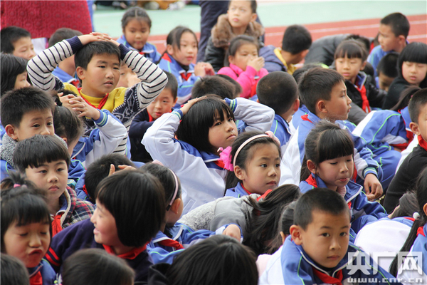 被疏散到操場(chǎng)上的小學(xué)生們。劉建高 攝