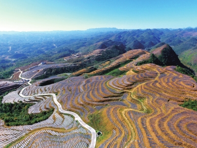 在大方縣雨沖鄉(xiāng),由恒大集團(tuán)幫扶援建的油用牡丹套種皂角基地已頗具規(guī)模。層層梯田向山頂盤繞,蜿蜒如春螺,披嵐似云塔,賦予荒山生命的律動。
