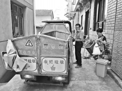 64歲的嚴(yán)志進(jìn)是六角塘村的垃圾分揀員。到底各家分類如何?第二天清晨五點(diǎn),記者跟著老嚴(yán)收垃圾,發(fā)現(xiàn)330戶人家,幾乎情況都非常好!按迕袂岸朔值煤,我的任務(wù)就可輕不少!崩蠂(yán)總結(jié)認(rèn)為,之所以有如此大改觀,關(guān)鍵就在村民從“要我分”變成了“我要分”。