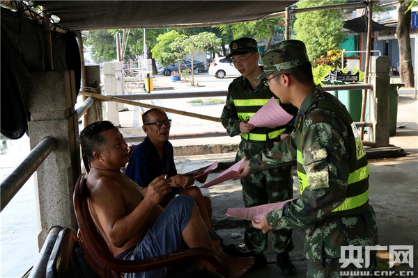 汕頭邊防支隊媽嶼邊防派出所官兵來到轄區(qū)居民家中告知臺風(fēng)最新消息,并發(fā)放警民聯(lián)系卡確保聯(lián)系。周峰 攝