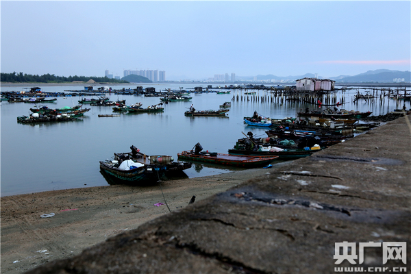 在汕頭市濠江區(qū)濠江入?谔,20多個養(yǎng)殖漁排上,漁民正在抓緊時間加固海上漁排,收拾漁網(wǎng),轉(zhuǎn)移漁排上的物資。21日下午晚些時候,臺風(fēng)逐漸逼近,海上吹起大風(fēng),下起陣雨。負(fù)責(zé)轄區(qū)海上治安以及漁船、漁民管理的達濠邊防派出所加強了海上巡查,幫助漁民固定纜繩、轉(zhuǎn)移物資。