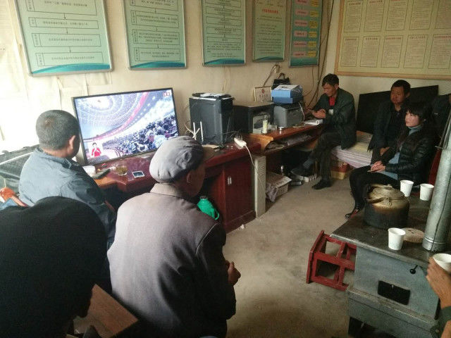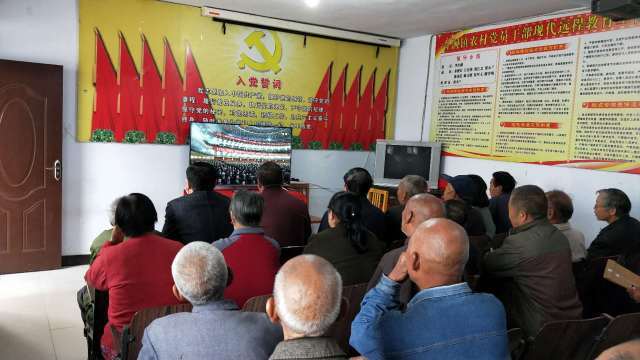 河南省林州市合澗鎮(zhèn)木纂村30多名黨員到村黨員活動中心收看直播。(攝影:中國鄉(xiāng)村之聲農(nóng)民觀察員路春生)