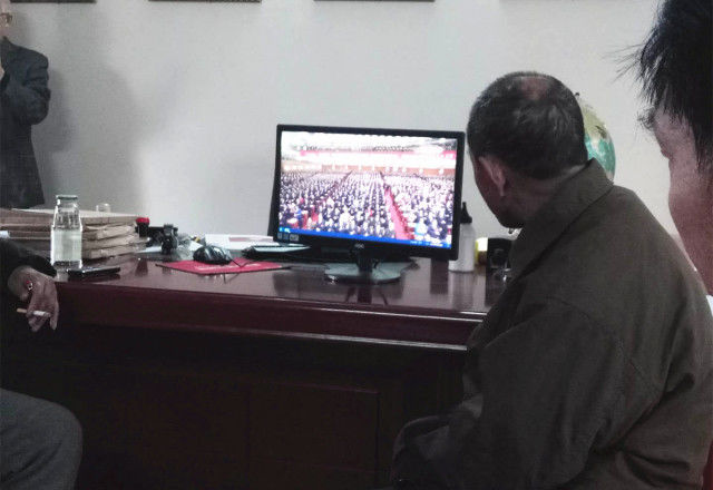 遼寧省鞍山市臺安縣西佛鎮(zhèn)西佛村村黨支部全體黨員一起看十九大開幕會。(攝影:中國鄉(xiāng)村之聲農(nóng)民觀察員竇亞強(qiáng))