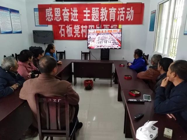 四川省遂寧市安居區(qū)聚賢鎮(zhèn)石板凳村黨員在村會議室收看。(攝影:中國鄉(xiāng)村之聲農(nóng)民觀察員徐素梅)