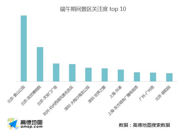 從熱門旅游城市TOP10來看,主要集中在珠三角、長三角區(qū)域。廣州、東莞、北京分別位居前三,深圳、蘇州、佛山、上海、杭州、鄭州、惠州紛紛進入前十。值得注意的是,端午期間關(guān)注度最高的景區(qū)TOP3均在北京,分別是北京的景山公園、故宮博物院、天安門。