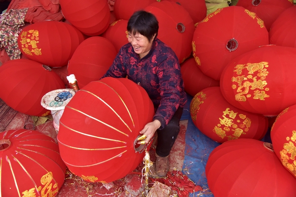 大紅燈籠最能凸顯節(jié)日的氣氛,在河南省?h西橋村燈籠場內(nèi),六十多歲的張愛鳳正在手工制作燈籠,她依靠勤勞的雙手每天能掙六十元左右,老大娘說,干到祭灶小年就不干了,掙了錢過好年。