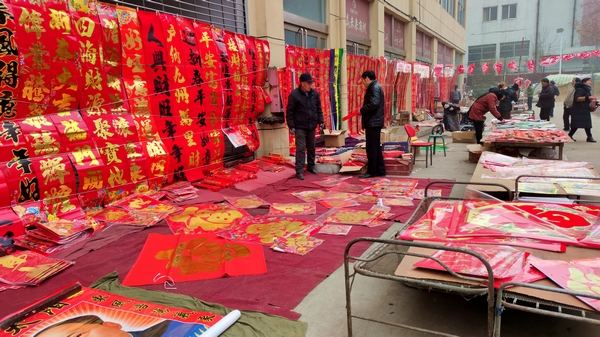 在鶴壁市明清古村落大胡村附近,有一個(gè)幾十年不變的賣對(duì)聯(lián)的地方,這里的對(duì)聯(lián)掛滿了墻,打工的人們回來后,這個(gè)地方就擠滿了人,都來買稱心如意的對(duì)聯(lián)。