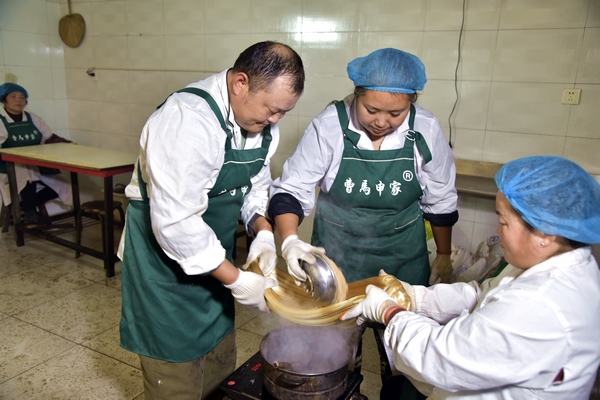 臘八祭灶,年下來到。過年離不開芝麻糖。二十三,糖瓜沾。圖為安陽崔家橋鎮(zhèn)董曹馬村“百年芝麻糖非遺傳承人”申運(yùn)海(左)和妻子(中)、姐姐(右)制作祖?zhèn)髅丶肌肮嗵恰薄9嗵堑臅r(shí)候三人要配合好,1秒左右倒入果仁碎、合攏,力度和時(shí)間都要掌握的十分準(zhǔn)確,否則就是合籠失敗。