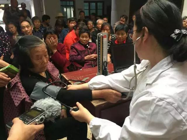 北京友誼醫(yī)院內(nèi)科主任醫(yī)師脫厚珍教授,在黃土店鎮(zhèn)衛(wèi)生院為鄉(xiāng)親們義診。很多上了年紀的留守老人,趕過來咨詢病情,脫厚珍教授向村民們講解了預防心腦血管疾病的方法。
