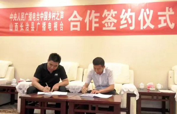 中央人民廣播電臺社教節(jié)目中心黨總支專職書記彭忠蛟與長治縣廣播電視臺臺長馮鵬威進(jìn)行了簡短正式的合作簽約儀式,從今年10月1日起,長治縣的父老鄉(xiāng)親就可以聽到中國鄉(xiāng)村之聲的節(jié)目了。