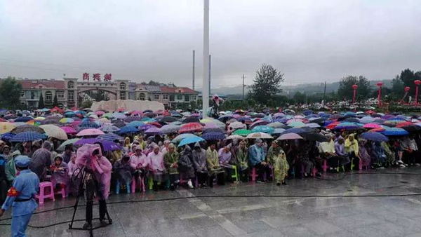 ▲群眾打傘看演出,熱情似火蓋過了大雨