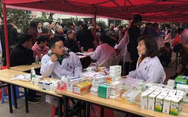 講課一結(jié)束,謝醫(yī)生就來到鎮(zhèn)醫(yī)院,為守候多時(shí)的當(dāng)?shù)匕傩樟x診,當(dāng)?shù)蒯t(yī)療機(jī)構(gòu)同時(shí)配合開展免費(fèi)咨詢及藥品派發(fā)等工作。