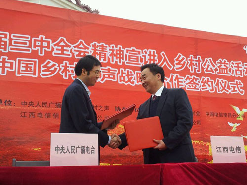 1月26日,中國鄉(xiāng)村之聲和中國電信江西分公司簽約儀式正式舉行。
