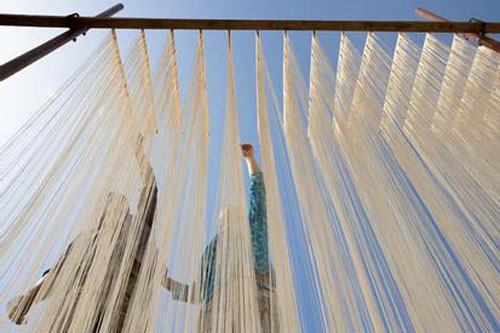 中江掛面的工藝是非常繁瑣講究的,他要經(jīng)歷八道工序,歷時(shí)16個(gè)小時(shí)才能精制而成。作為中江掛面?zhèn)鞒腥绥娗闪窒蛴浾呓榻B了掛面的制作工藝。