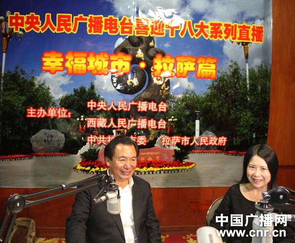 拉薩市委副書記、市長多吉次珠與西藏電臺主持人文心在直播間