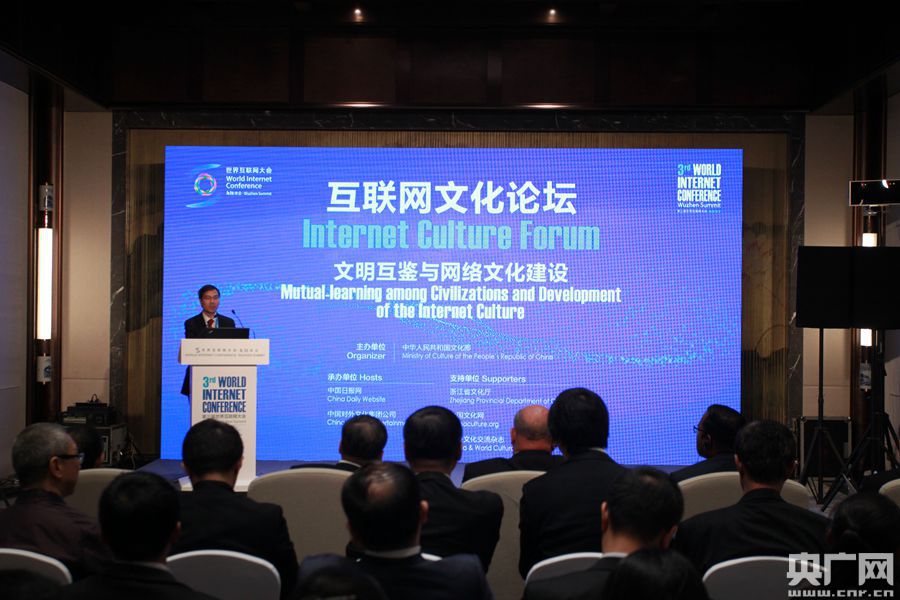 第三屆世界互聯(lián)網(wǎng)大會互聯(lián)網(wǎng)文化論壇11月17日下午在烏鎮(zhèn)互聯(lián)網(wǎng)國際會展中心運河廳舉行。論壇以“文明互鑒和網(wǎng)絡(luò)文化建設(shè)”為主題,中國文化部副部長項兆倫致歡迎詞,白俄羅斯文化部副部長切爾尼克、中國藝術(shù)研究院院長連輯、馬爾代夫駐華大使穆罕默德?費薩爾和復(fù)旦大學(xué)中國研究院院長張維為作主旨演講,16位國內(nèi)外互聯(lián)網(wǎng)和文化業(yè)界代表將圍繞“增進(jìn)人文交流 促進(jìn)文明互鑒”和“共同推動網(wǎng)絡(luò)文化繁榮發(fā)展”議題深入探討和交流,來自國內(nèi)外近100位嘉賓參加論壇。(央廣網(wǎng)記者 韓靖攝)
