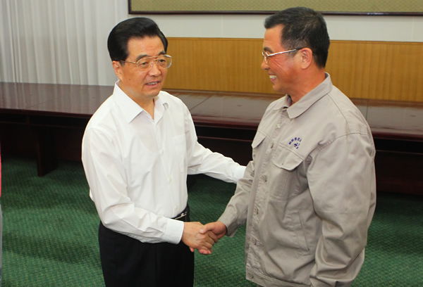 中共中央總書記、國家主席、中央軍委主席胡錦濤等領導同志親切接見《郭明義》劇組主創(chuàng)人員。話劇《郭明義》是我省按照中央和省委領導指示精神,為進一步宣傳學習郭明義同志的感人事跡和弘揚郭明義的崇高精神,組織創(chuàng)作排演的大型話劇。