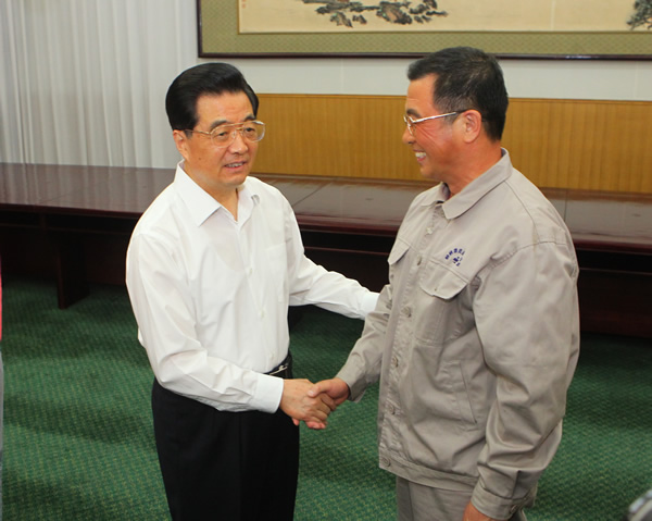中共中央總書記、國家主席、中央軍委主席胡錦濤等領(lǐng)導(dǎo)同志親切接見《郭明義》劇組主創(chuàng)人員。