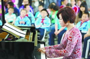 從海頓到舒伯特,再到《水草舞》、《歡樂的牧童》,陳薩精心為孩子們選擇了多首相當(dāng)動聽的中外鋼琴小品,并以講演結(jié)合的方式,為孩子們生動講述了這些動聽曲子的背景和故事,讓孩子們感受到了室內(nèi)樂輕松幽默又或是靜謐甜美的另一個側(cè)面,從音樂中聽到了從未聽到過的“童話故事”。演奏間歇,她還鼓勵孩子們走上前來,試著觸摸鋼琴。其中一名患有自閉癥的孩子聽了陳薩彈奏的一首《天空之城》后竟然能模仿得有模有樣,雖然只是簡單的旋律,但也讓陳薩非常激動!拔也恢酪淮我魳窌芙o這些孩子帶來什么,也許并不能完全打開他們的世界,但卻可以尋找一種和他們交朋友的方式,讓他們知道世界并不是那么的孤單!标愃_說。