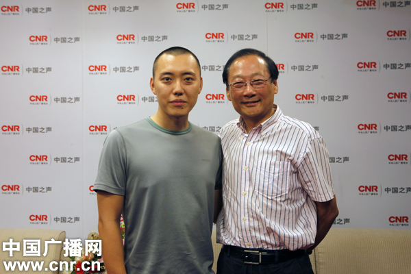 中廣網(wǎng)北京7月14日消息,著名樂評(píng)家陳立直播前與主持人楊昶合影留念(中廣網(wǎng)記者 李雪南攝)