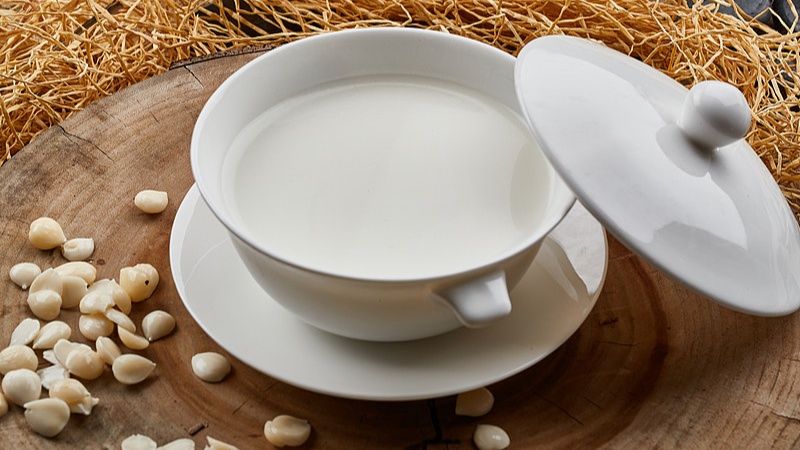木瓜含維生素C與木瓜蛋白酶(提亮膚色、促吸收),銀耳含膠質(zhì),牛奶補鈣,養(yǎng)顏同時又補營養(yǎng)。