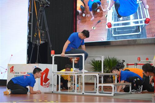 而對(duì)于承辦方,如此全新的嘗試,新的問(wèn)題也是不斷涌現(xiàn),沒(méi)有現(xiàn)成的加載裝置做加載測(cè)試就是其中最大的一項(xiàng)大挑戰(zhàn),怎么辦?自主研制!“我們團(tuán)隊(duì)從2017年5月就開(kāi)始著手進(jìn)行了這項(xiàng)工作的準(zhǔn)備,一幫老師帶著一幫學(xué)生,在全校啟動(dòng)了跨系跨學(xué)科的大合作攻關(guān),第一臺(tái)出爐后,我們后續(xù)又進(jìn)行了多次的工藝突破、改良,小到用材的選擇、每一項(xiàng)指標(biāo)的精度與靈敏度調(diào)適等!奔虞d裝置研制工作負(fù)責(zé)人沈家棟老師談起了裝置制作的過(guò)程,現(xiàn)下,大賽的成功舉辦終于可以讓他們一直緊繃的弦放松了,他有感而發(fā):“同濟(jì)浙院雖然是一所新興的獨(dú)立學(xué)院,雖然此前未曾申辦過(guò)省級(jí)學(xué)科競(jìng)賽,但是,學(xué)校很拼,教師也很努力,這次大賽的成功舉辦就是一個(gè)最好的見(jiàn)證和考驗(yàn)。我想,從這次成功舉辦之后,在承辦學(xué)科競(jìng)賽而且是A類(lèi)學(xué)科競(jìng)賽的高校目錄里,我們就不再是‘0’了,二是‘1’了,有起步點(diǎn)了,相信以后會(huì)有越來(lái)越多這樣的‘1’!保ㄍㄓ崋T:曹嘉燕/文 陶博勇/圖)