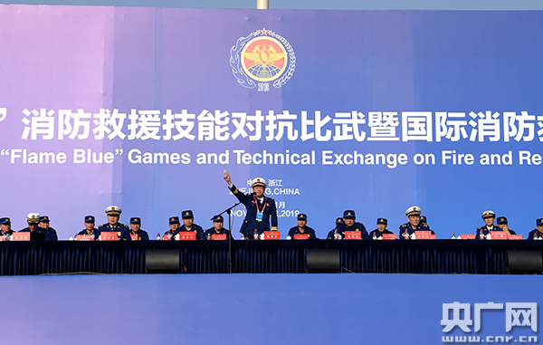央廣網(wǎng)紹興10月30日消息(記者 李思默)10月30日,全國(guó)首屆“火焰藍(lán)”消防救援技能對(duì)抗比武在位于浙江省紹興市的浙江消防救援總隊(duì)培訓(xùn)基地開幕,應(yīng)急管理部消防救援局副局長(zhǎng)、消防救援助理總監(jiān)魏捍東出席開幕式。