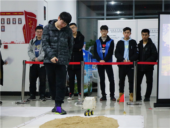 比賽一開始,成員先對試驗場地進行了數(shù)據(jù)分析,以設計出更符合試驗場地需要的裝置,接著小組成員各司其職,分別負責出謀劃策、具體組裝、操作與調(diào)試。準備很是周全,可是由于用力過猛,他們的第一個雞蛋還是“壯烈犧牲”了,在距離比賽結(jié)束的20分鐘里,他們決定利用所學知識改變裝置——采用多面體結(jié)構(gòu)裝置。他們的隊長,19機械專業(yè)李登解釋:“裝置每一個面為三角型結(jié)構(gòu),雞蛋則處于裝置的中央,這樣有兩個好處:一是落地時,不論哪一面先著地,雞蛋都不會與地面有直接接觸,二是雞蛋在下落過程中處于懸空狀態(tài),當裝置落地時,撞擊力不會傳遞到雞蛋上,從而保證雞蛋無破損!标爢T們表示,無論是他們組還是其他組,雞蛋如有破碎,所有隊的人員都是很焦躁的,但失敗乃是成功之母,在冷靜、認真分析后,他們最終順利地解決了難題。特別是隨后的遙控運輸,他們是融入了所學的編程知識順利完成的,他們認為,這也正是比賽的意義所在:在準備的過程中會有各種意外,在比賽中意外也會隨時到來,但是始終考量的是他們的團隊心態(tài)與挑戰(zhàn)問題的能力,和破解問題能力。