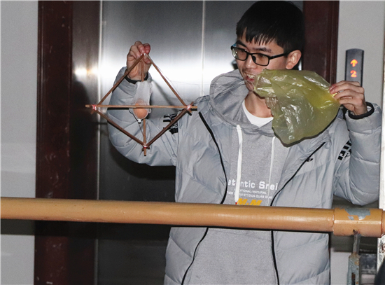 最終,“創(chuàng)意隊”“讓雞蛋安心飛”“恰恰香瓜子”三個隊伍分別獲得了一、二、三等獎。比賽之精彩,評委孫雅萍老師充分肯定了同學們對已連續(xù)舉辦了九屆的“異想天開”大賽的熱衷程度,也道出了這一比賽的意義,她指出:“傳承重要,創(chuàng)新也重要”。學生們在學習前輩經(jīng)驗時,也充分發(fā)揮主觀能動性,無止境地開發(fā)自己的潛能,樹立成功、積極的心態(tài),方而創(chuàng)造出了新的奇跡。組織者兼評委之一的胡健老師也激動地表示“雞蛋落地這件事本身很常見,但我們?nèi)怨膭畲蠹耶愊胩扉_,用新的思維方式去解決問題。值得欣慰的是,今年比賽中我見到了許多熟悉的面孔,去年參加過,今年再次報名的有很多,而且還有不少大一新面孔,同學們的積極性真的非常高!這就是大學生活該有的樣子!”(許諾 王瑩瑩 薛佳文)