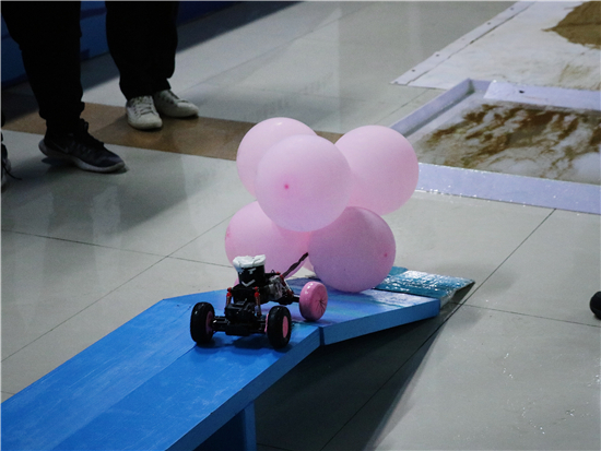 大大的紙箱保護著雞蛋,再栓上氣球,雞蛋如一個遠行的孩童四處探尋生活的意義——起飛、落地、越野、完好無損!“飛蛋旅行”計劃成功!“TOP白給隊”的“飛蛋旅行記”給人以大大的驚嘆號!按蠹埾浜蜌馇蚨际潜Wo裝置,氣球具有彈性能起到減震作用,可以幫助穩(wěn)定下落的紙箱,以便雞蛋成功運輸。”成員之一、18車輛專業(yè)岑金洲解釋他們的設計思路。這次,在運輸裝置上他們利用了TOP模型協(xié)會閑置的遙控越野車架,通過對電子調(diào)速器和控制接收器更換的方式,帶領(lǐng)雞蛋順利通過沙地賽道、淺水池、獨木橋。賽后,他們感言,“在速度控制上我們還有更多的改進空間,不過總的來說收獲很大!在合作中我看到了團隊的力量!”