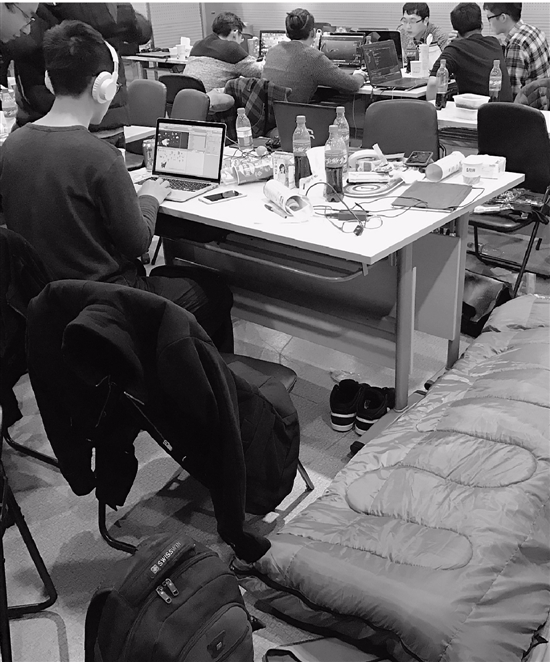 長時(shí)間的頭腦風(fēng)暴讓這些年輕的創(chuàng)作者有些疲憊,有的參賽者已經(jīng)將準(zhǔn)備好的睡袋鋪開進(jìn)行短暫的休息。隨著夜幕降臨,大家的熱情絲毫沒有降低,部分參賽者選擇睡在活動現(xiàn)場,這樣有問題可以及時(shí)溝通,突如其來的靈感也能隨時(shí)和小伙伴分享。