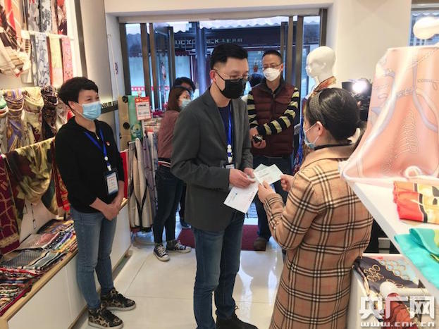 在對杭州新潔繡絲綢有限公司、杭州儲秀紡織品有限公司等率先申請的4家絲綢企業(yè)進行核對后,2月25日下午,長慶街道辦事處主任、杭州中國絲綢城管委會主任袁俊第一時間來到商鋪,為企業(yè)送上了復工“大禮包”。