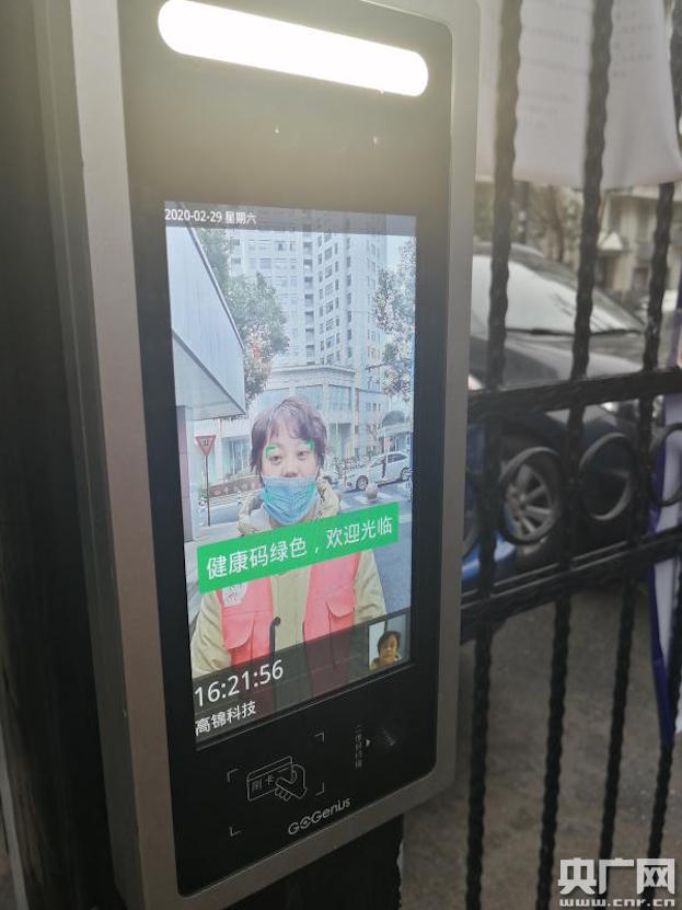李大伯聞聲湊了上去,只見在道閘口有一臺小儀器,簡單照了個面,還沒反應過來,“嘀”的一聲,儀器的屏幕就顯示:“健康碼綠色,歡迎光臨”,還同步播放語音提醒,閘機同步開啟,一來一去不到5秒的時間。