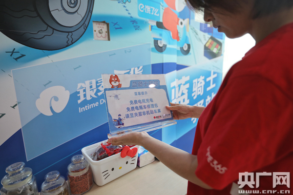 銀泰的工作人員表示:“設(shè)立休息站是希望奮斗在城市的騎士們可以在銀泰稍作歇息,更好地出發(fā)。小哥們可以在這里喝水泡茶、落腳吃飯、翻閱書刊、玩解壓游戲。我們?yōu)轵T士‘坐騎’也提供了充電裝置、電動車修理包等。”