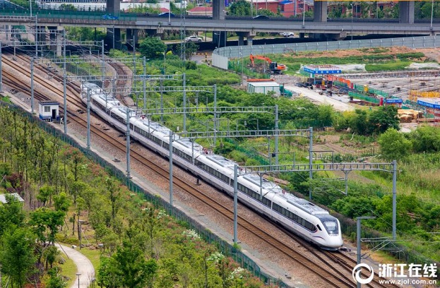 6月8日,寧波市政府與上海鐵路局寧波車務(wù)段聯(lián)合發(fā)布,寧波至余姚城際鐵路(市域列車)定于2017年6月10日開通試運(yùn)營(yíng)。這條城際鐵路是寧波市打造城際鐵路網(wǎng)的第一步,線路全長(zhǎng)48.7公里,途經(jīng)丈亭、三七市、慈城、莊橋等地。寧波至余姚采用“一站直達(dá)、兩端對(duì)開”的模式,每天開行8對(duì)16個(gè)班次,全程運(yùn)行時(shí)間約為35分鐘。 (浙江在線記者 董旭明 張迪 拍友 王越 攝)