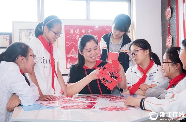 近日,湖州千金鎮(zhèn)紀委組織開展“童心向黨·剪紙喜迎十九大”活動,F(xiàn)場,孩子們在千金鎮(zhèn)金剪刀傳承人潘曉霞的指導(dǎo)下,充分發(fā)揮想像力進行創(chuàng)作,一雙雙小手剪出了廉潔、公正、愛國、守法等剪紙作品,以實際行動喜迎十九大;顒舆展示了潘曉霞的部分廉潔剪紙作品,大力倡導(dǎo)家長們從自身做起,端正行為,樹好榜樣,讓孩子們在廉潔家風中健康成長。 (浙江在線拍友 沈勇強 攝)