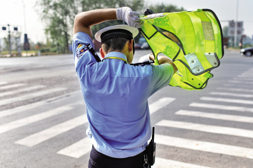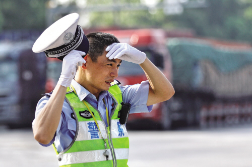 甩掉臉上的汗珠,他笑著說,夏天我們是“焦”警,是久經(jīng)“烤驗(yàn)”的。