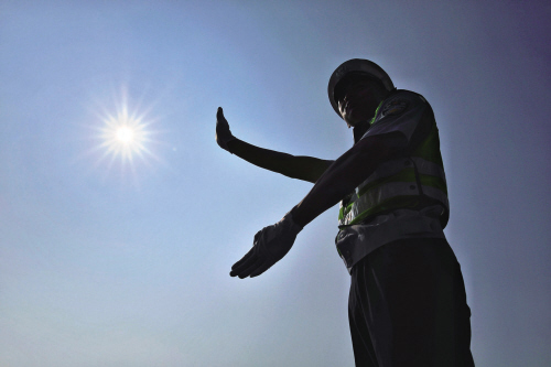 然而,在這種高溫炙烤下,有這么一群人,他們奮戰(zhàn)在道路一線,用汗水換來交通的順暢和市民的出行平安,維持道路的暢通與安全。